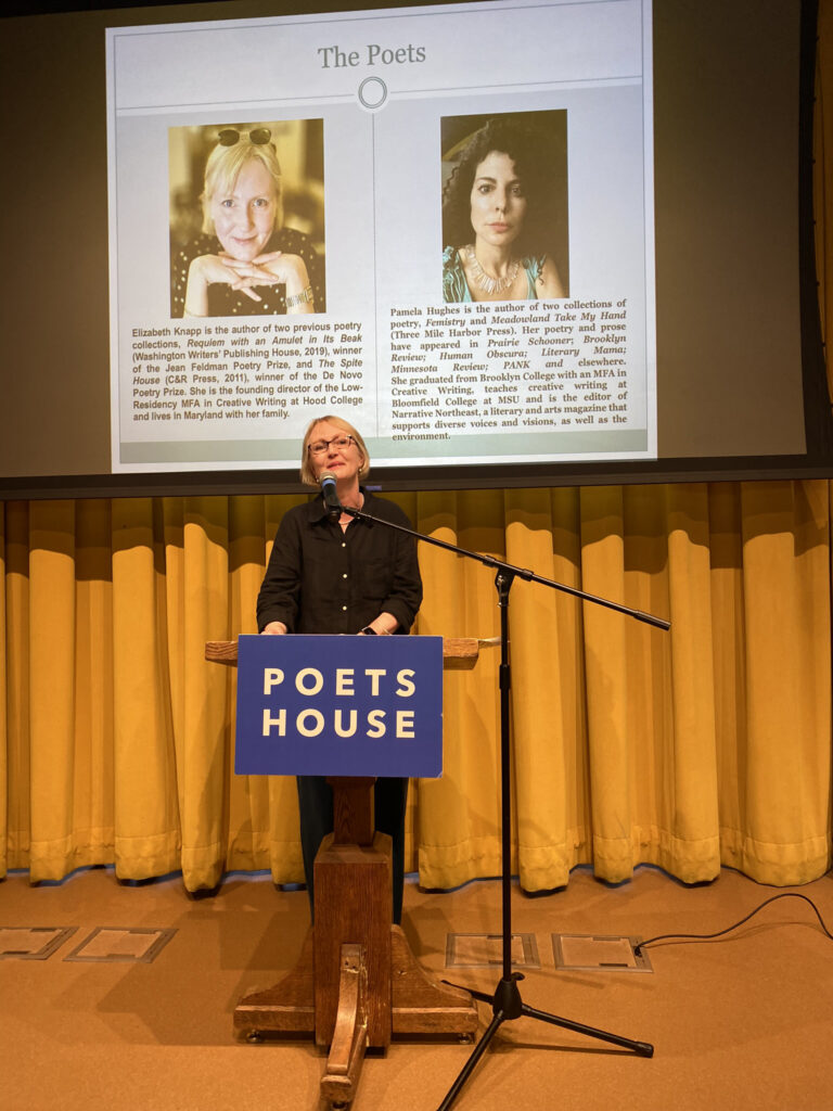 Pamela Hughes and Elizabeth Knapp read at their book launch at Poets House, with poet Paul LaTorre as our gracious MC. Thanks, Paul Genega, editor, publisher, poet, for his wonderful introductions of both collections, as read by Paul LaTorre.